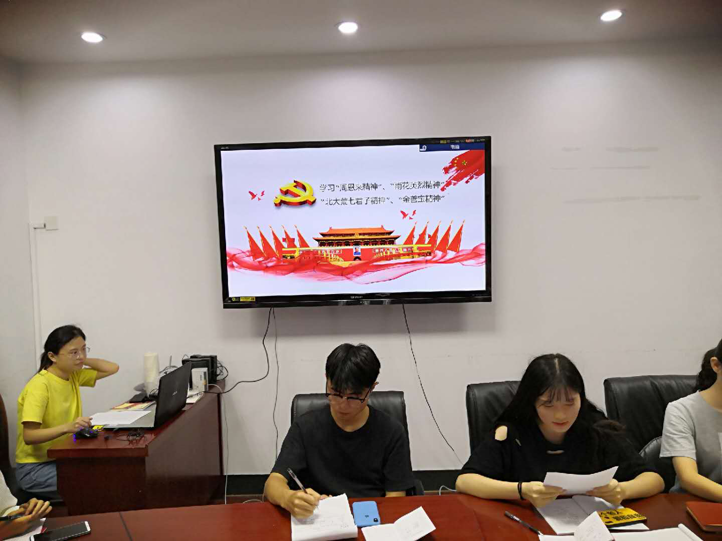 金玉妍同志为大家分享了雨花英烈精神。新民主主义革命时期,雨花台的革命烈士成千上万,已知姓名的有1519名,平均年龄不到30岁,其中30岁以下的占60%。革命先烈前仆后继地英勇牺牲,换来了中国革命的胜利。“为中国人民谋幸福,为中华民族谋复兴”,这是雨花英烈的人生写照,也是中国共产党人的精神。