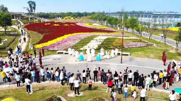 明月清风,秋香意浓。采菊东篱,悠见南山。与此同时,远在1000公里之外陕西省西安市鄠邑区祖庵镇,一面长60米,宽40米,同样由菊花铺就而成的国旗绽放在钟南山下。王海滨介绍,“鄠邑区祖庵镇菊花基地占地130亩,当地政府自2018年和我校菊花研究团队合作,开展菊花产业的合作,目前成绩斐然,仅去年一个月时间就有30万人前来参观,丰富了西安市民的物质和精神文明生活,以实际行动建设‘美丽中国’”。